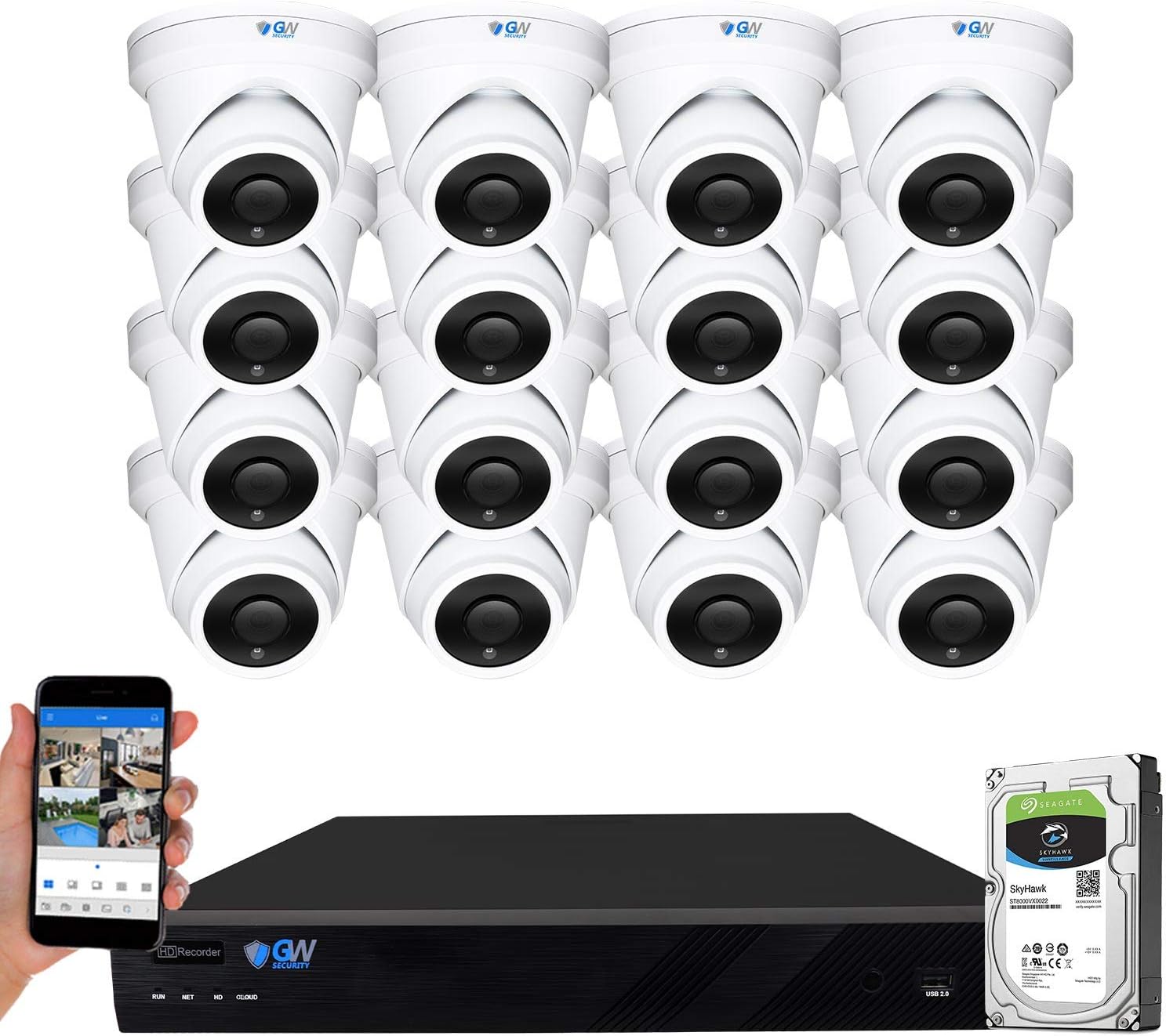 Uр Tо 40% оƒƒ GW Security 16 Channel 4K NVR 6MP IP Surveillance Security Camera System with 16-Piece UltraHD 6MP H.265 Weatherproof Microphone Security Turret PoE Cameras
